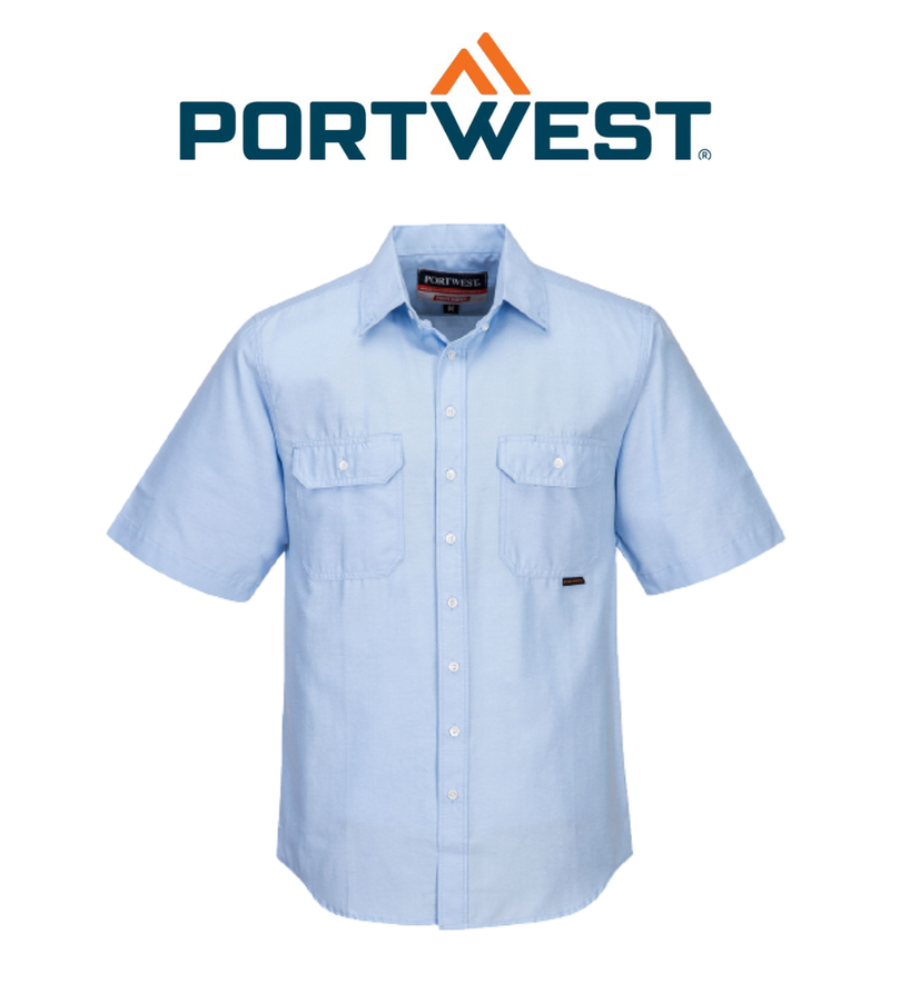 - Poly Cotton Short Sleeve Chambray business shirt.