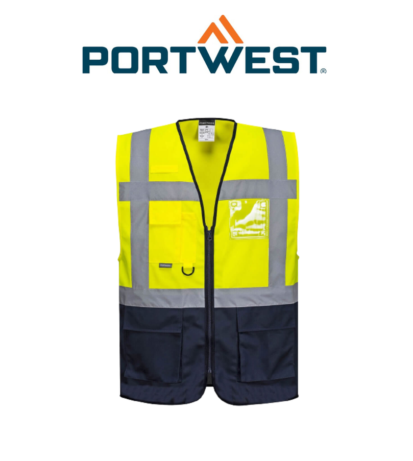 Revolutionary in its design, the executive vest combines the light weight of a waistcoat with the practicality of pockets for those situations when a jacket may be too warm. A clear ID pocket for security passes and cards compliments this unique garment. With many companies and their operatives now using combinations of hivisibility orange and yellow fabrics together, these contrasting styles are in increasing demand for many customers.