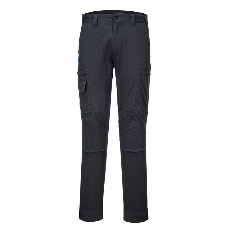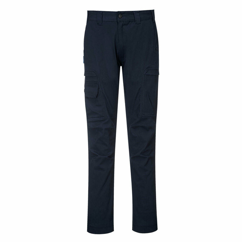 Slim fitting cargo trouser made from durable cotton stretch fabric that delivers long lasting comfort and freedom of movement. Packed full of features to offer enhanced performance including pre-bent knees, a high rise back waistband and an adjustable leg length for added convenience. Multi-functional thigh pockets are ideal for secure storage of phones, pens and tools.