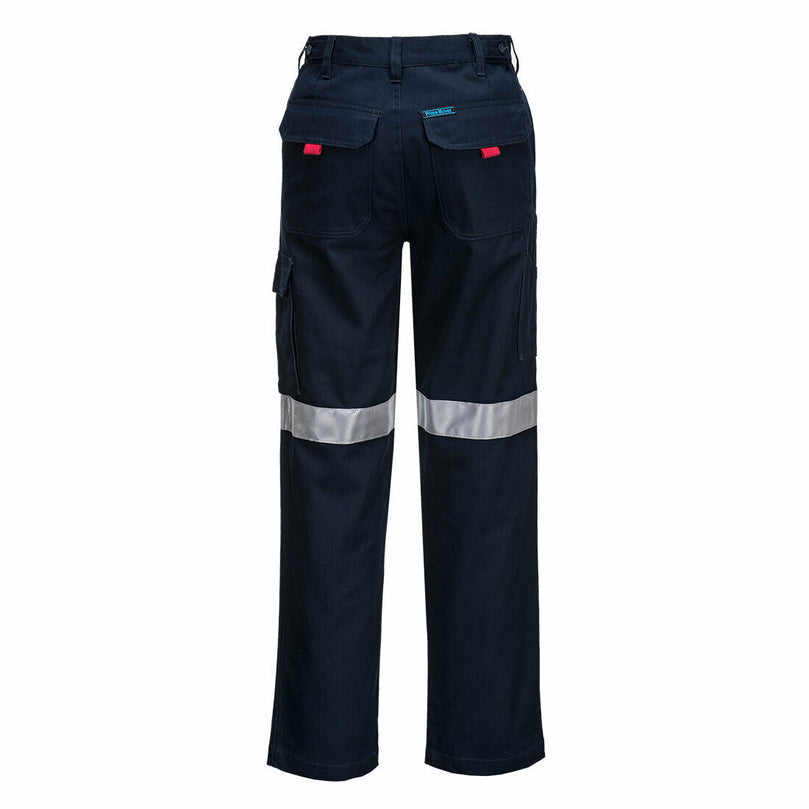 100% Pre Shrunk cotton drill cargo pants with tape. Convenient pockets for extra style and storage. Including left leg cargo pocket plus ruler pocket, 2 large back pockets with tough fastener closure and 2 deep hip pockets. Reinforced stress points, wider legs and adjustable waist for wearer durability and comfort.Metal zipper and metal button closure with Lumentex Reflective Tape around knee.