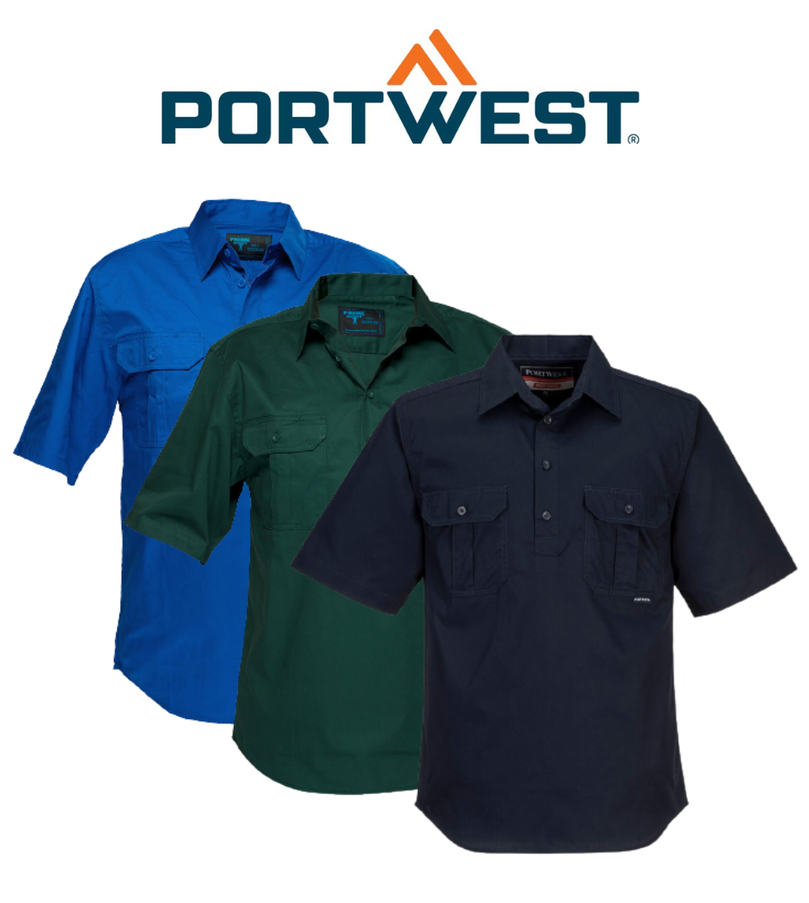 - Lightweight 100% Cotton Short Sleeve closed front business shirt.