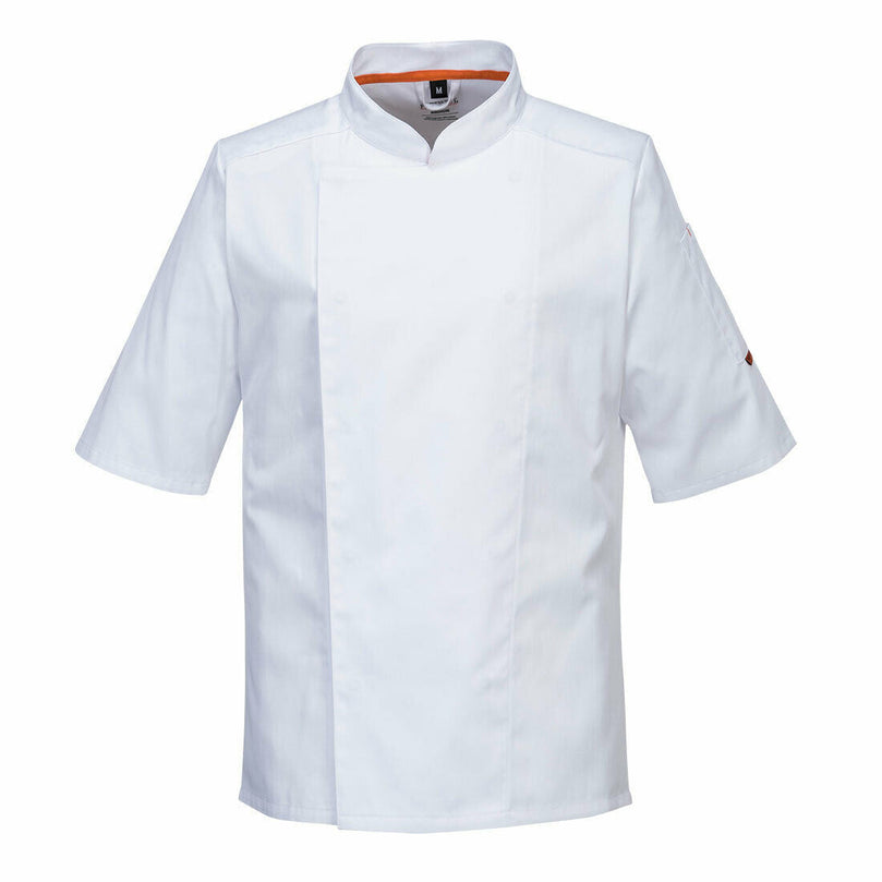 Designed with MeshAir Pro mesh aerated panels, the C738 offers an ideal solution when it gets hot in the kitchen. Featuring highlighted trims, double breasted concealed front fastening and pen pocket. This chefs jacket has been designed for style and practicality.