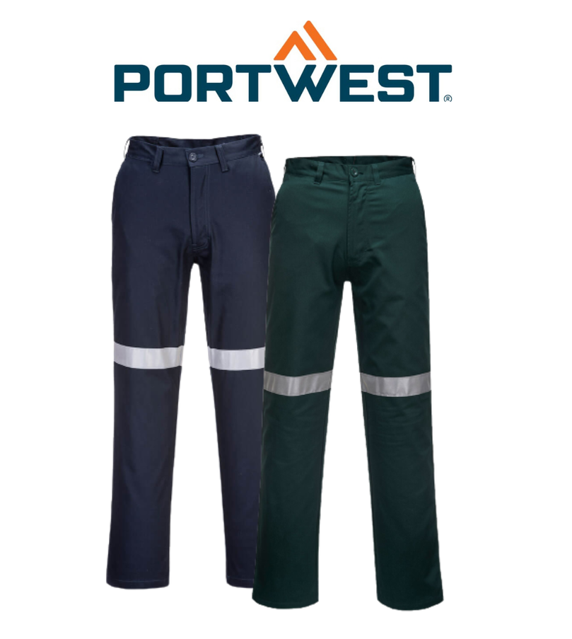 100% Pre shrunk cotton drill, mid weight Straight Leg Pants with tape. Traditional style pants with a tighter fit around the thighs, internal back pockets and an adjustable waist. Unique construction of reinforced stress points, providing strength and comfort for the wearer. Plastic zipper and plastic button closure. Reflective tape around the knee.