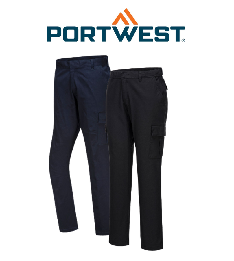 - Portwest Stretch contains a cotton rich and elastane mix with superior comfort and freedom of movement